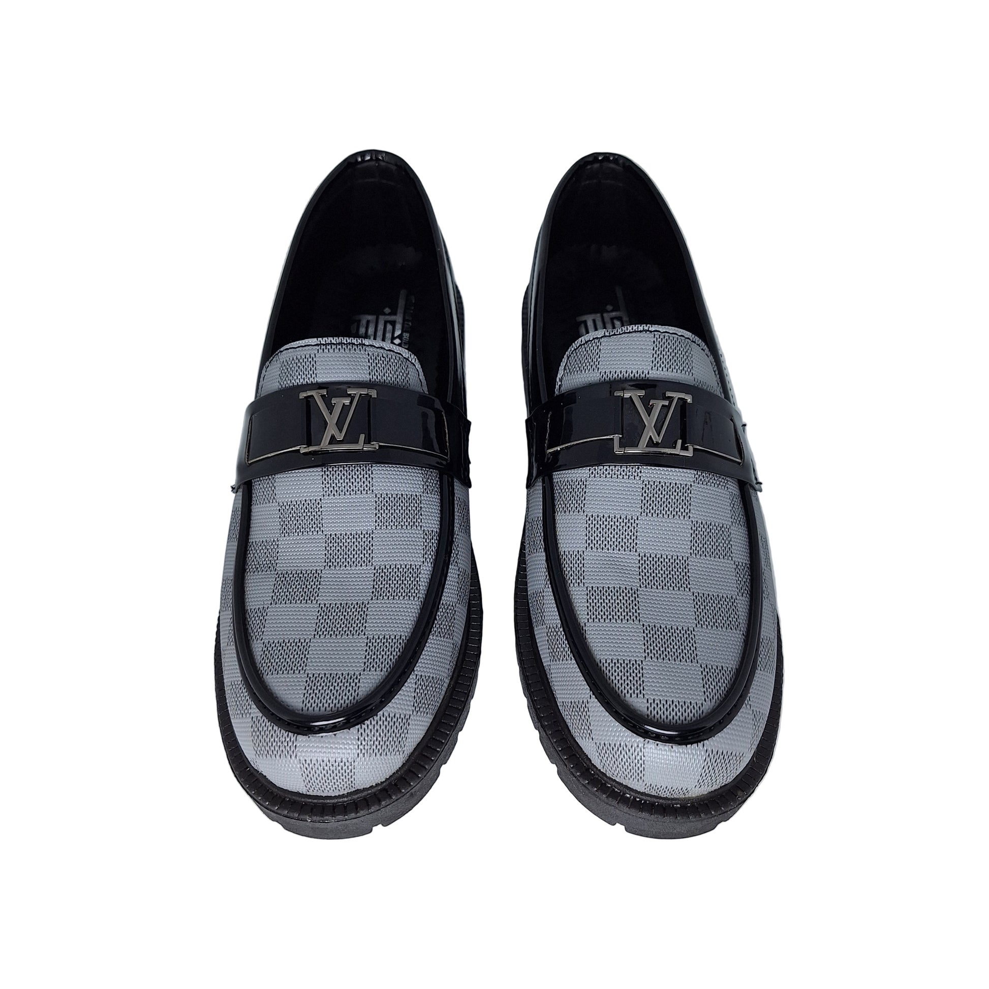Step into effortless sophistication with the Major loafer - Silver Grey Edition. Designed for the modern gentleman, these loafers feature a sleek checkered pattern combined with high-gloss black leather accents for a sharp, polished look. The metal monogram buckle on the vamp adds a touch of understated luxury, while the cushioned insole and rugged outsole ensure comfort and durability all day long.