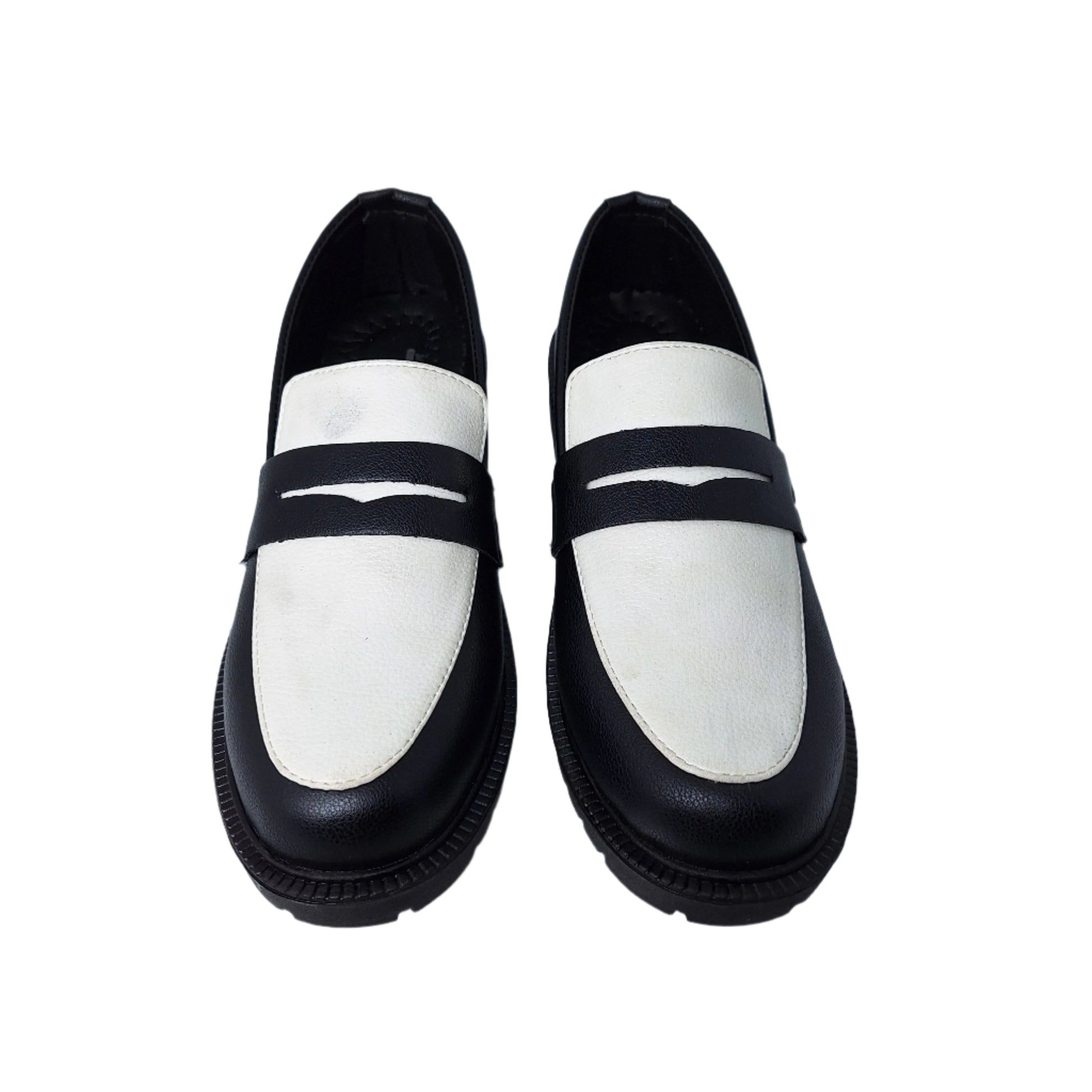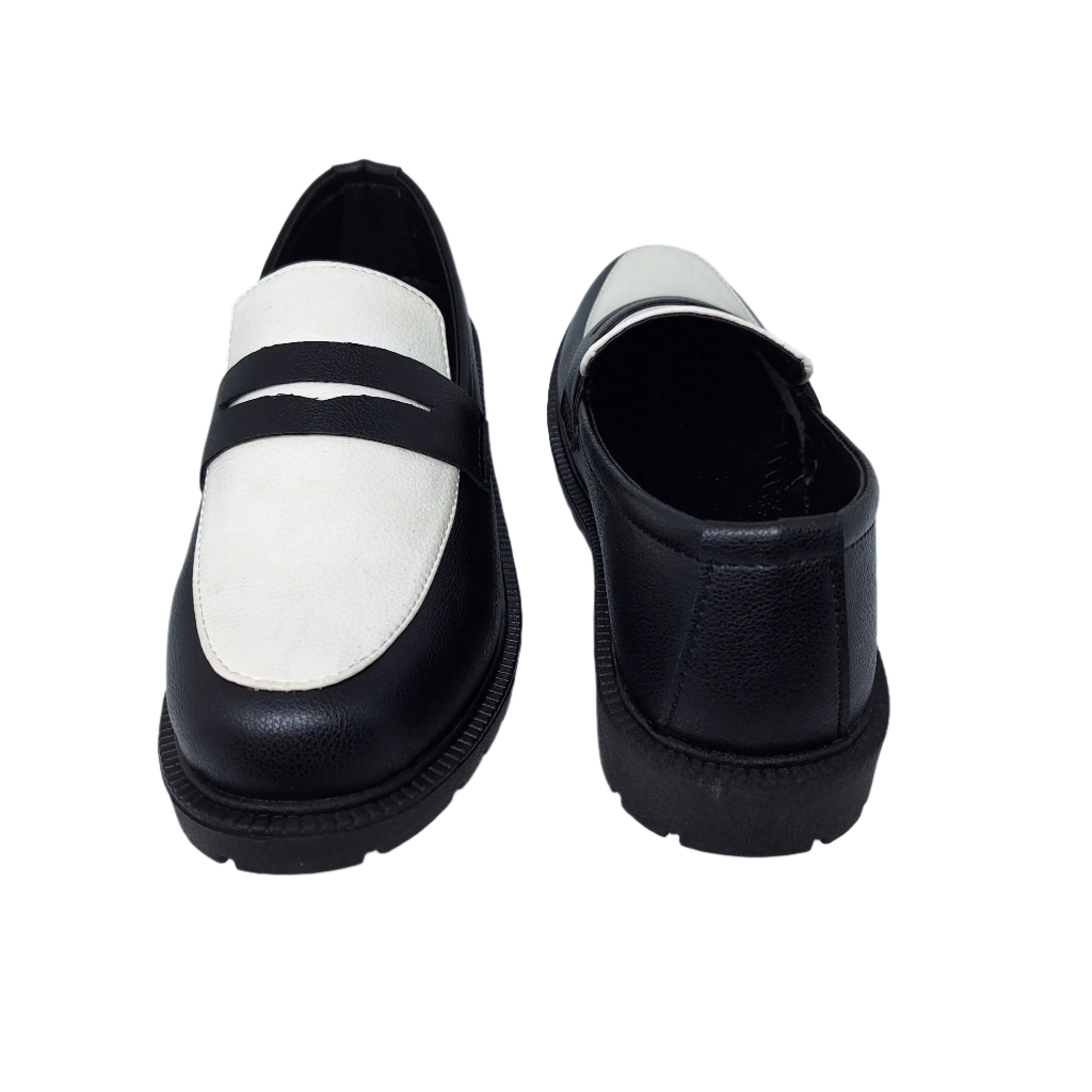 Step into timeless style with our Duo Tone Penny Loafers, crafted for the modern gentleman who values both comfort and class. Featuring a premium faux leather upper in a rich Black with a striking white vamp, these loafers are a perfect blend of bold contrast and refined design.