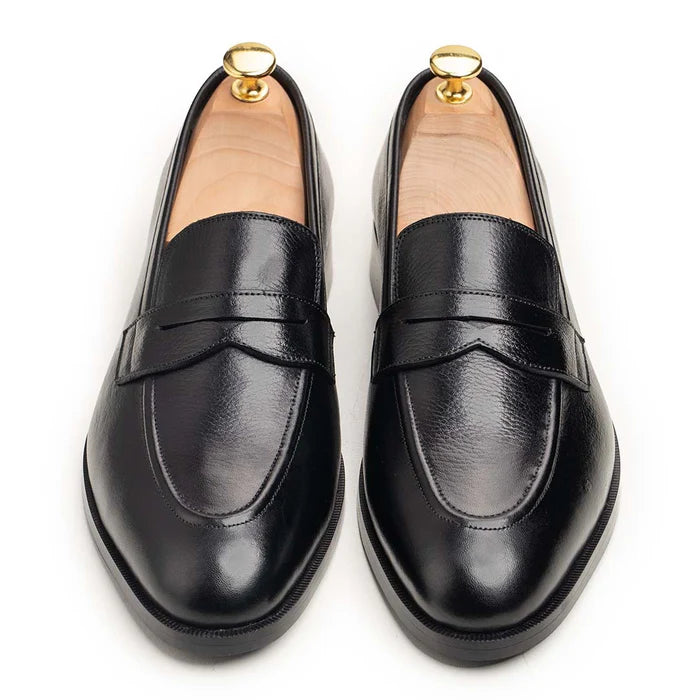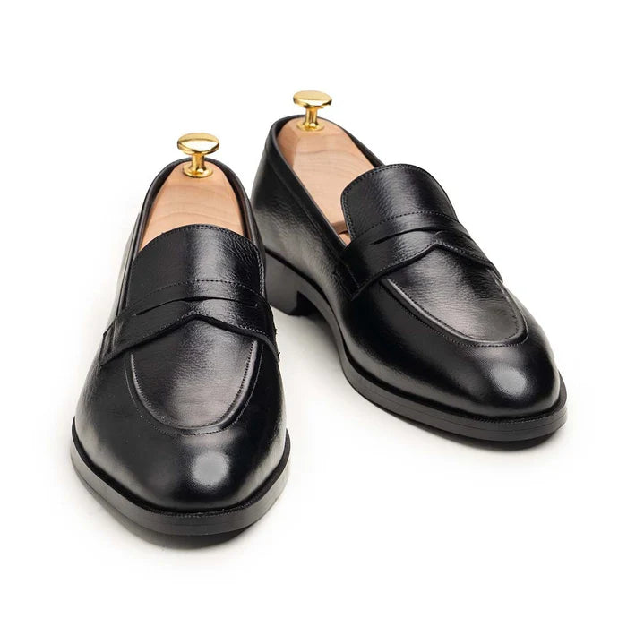 Step into timeless sophistication with the Classic Black Leather Penny Loafers. Meticulously crafted from smooth, premium-grade leather, these loafers embody refined elegance and everyday versatility. Their sleek, streamlined design is complemented by a clean penny strap and subtle stitching that enhance the polished look.