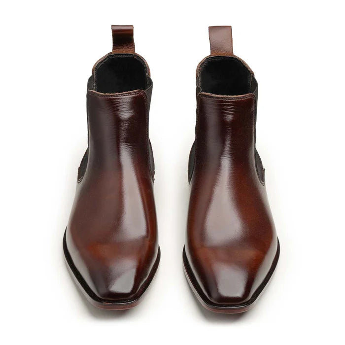 Step into timeless sophistication with our Classic Leather Chelsea Boots in rich chestnut brown. Crafted from premium full-grain leather, these boots deliver a sleek, polished look that complements both formal and smart-casual outfits.